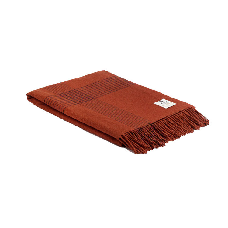 De lijnen in de Burnt Orange Aspen kleed oogt als een diep rijke schaduw. Deze combinatie zorgt voor een warme rijkdom wat zich meebrengt in elke kamer. Het plaid is luxueus zacht door de combinatie van kasjmier en lamswol