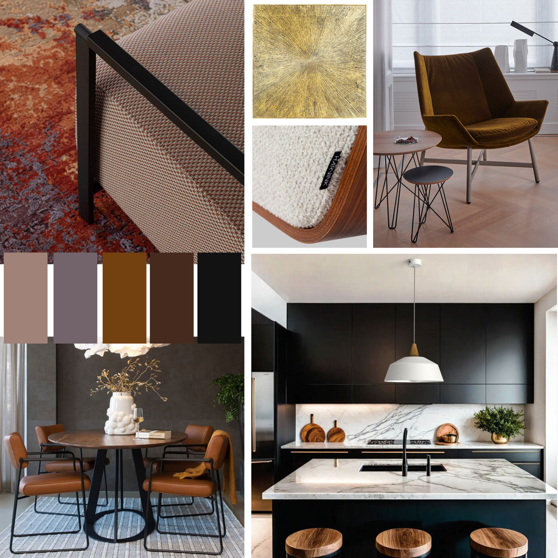 Kleuren spelen hier ook een grote rol. Kies voor een basis met neutrale kleuren zoals zwart, grijs, beige of wit. Deze rustige basis kun je aanvullen met accentkleuren zoals smaragdgroen, bordeauxrood, nachtblauw en natuurlijk goud voor een luxueuze touch.