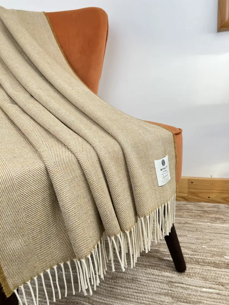 Een klassieke visgraat geweven met superzachte lamswol voegt elegantie en charme toe aan uw huis.
