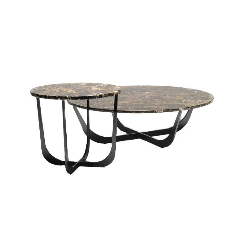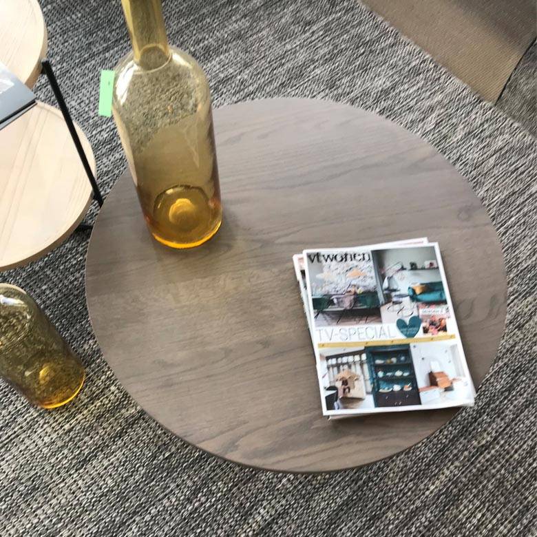 De Spindel is een eigenwijze salontafel. Hij is samen te stellen in verschillende maten en materialen zoals hout, keramiek en marmer.
