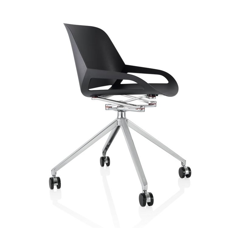 Numo past overalDe gloednieuwe designstoel Numo is ontworpen om te bewegen. Op kantoor, in wachtruimtes, tijdens de vergadering, aan de eettafel en zelfs buiten (gepoedercoat slede- onderstel).