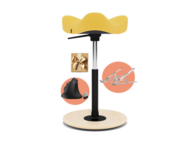 Het zitgedeelte kantelt het bekken zachtjes naar voren, waardoor de wervelkolom recht komt te staan.